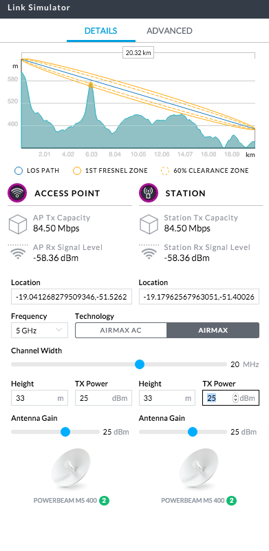 Tanto faz se preenche o calculo com Rocket, NS, NBridge, o que importa é a potência EIRP, descontado a perda por distancia (free space loss).