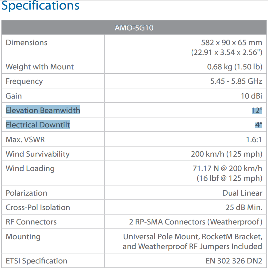 Só tenho mais uma dúvida, no datashhet do omnitik não vem informando o Elevation Beamwidth nem Electrical Downtilt.