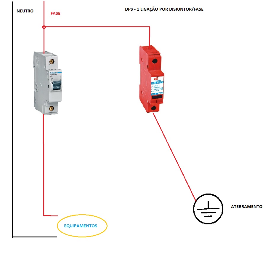 Esse tipo de ligação deve ser feita uma por fase. Aqui está representado uma ligação monofásica. Se fosse por exemplo trifásico, em cada fase teria um dispositivo DPS.