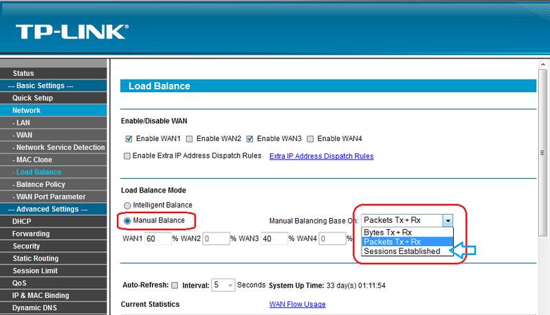 opcao de um site sair sempre pelo link x nao funciona nunca pois tenho que cadastrar os ips do site sendo que so funciona se tiver um servidor dns interno(antes do load-balance) assim ja passando o ip de destino ao TP-link, quando um usuario digita www.nomedosite.com.br quem resolve o dns é externo depois do tp-link ou seja quando o dns é resolvido ja passou por ele(so consegui fazer funcionar colocando um servidor dns interno) na teoria funciona.