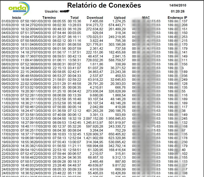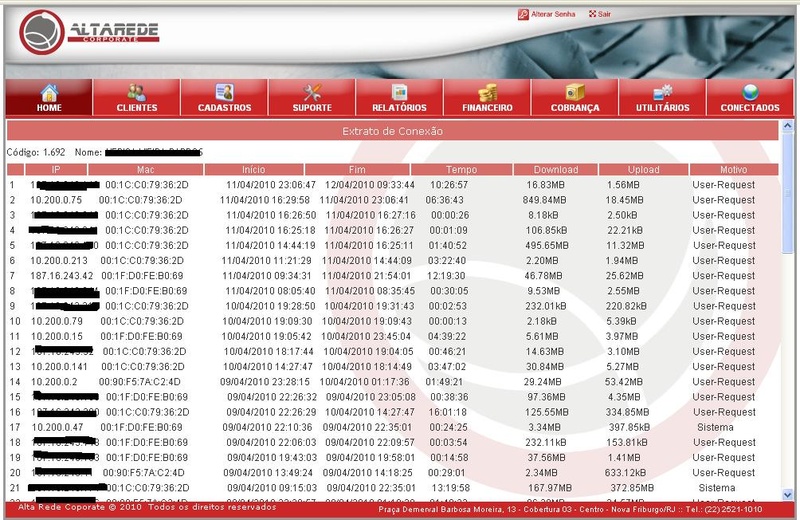 Ter um extrato de conexão do cliente é uma ótima solução:burnout:, o Altarede System disponibiliza esse relatório no sistema e também na própria Central de Assinante, assim o próprio cliente pode acompanhar o uso da conexão, por exemplo o pai que ver o horário que o filho ta usando a internet e etc...