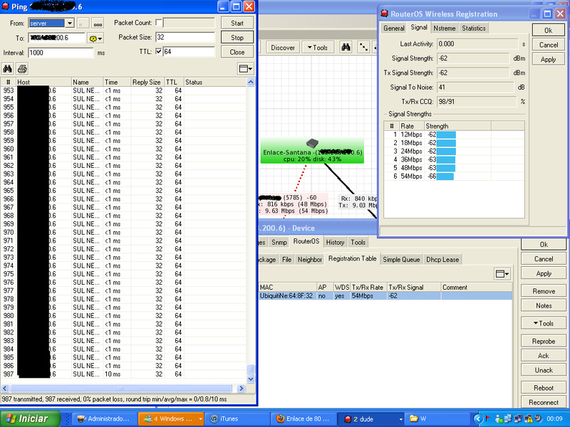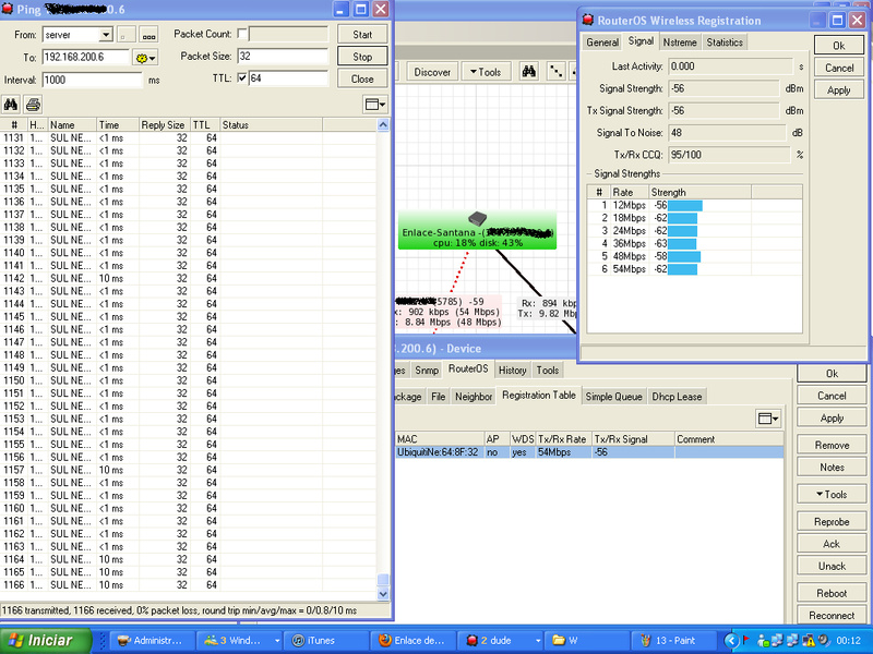 Oi ....galera e o seguinte....fechei o meu sinal aqui hoje em -65 db so que o tx e rx so passa 6.5 mbs e o ccq varia de 2 a 20 % ou seja pessimo e preciso passar 50 mega full......lembrando q o enalace e de 78 km ....conforme coordenadas acima....agora vou testar com xr5 desisti do rocket m5 ... sendo q fiz outro enlace com ele em 50 km e deu trafego de ate 29 mb ......ou seja nao gostei pois com bullet m5 em 20 km fechei em 100%...trafego tx rx 150 por 150 mbs