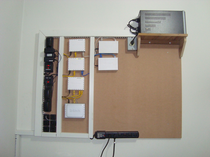 Fora o patch panel, tem caixa plastica, tipo da Patola.com.br , que pode ser usada, com keystones RJ45, eu realmente acho interessante colocar uma duzia de capacitores paralelos nessas caixas, cerca de 1000uF pra cada 5W de consumo.