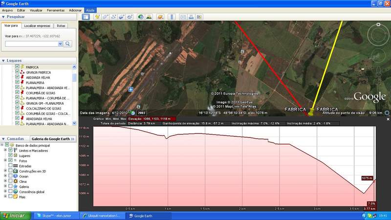 O meu terreno não tem visada tem um morro mais as condições achei que fossem iguais ou melhores que a do colega que fez o teste de 3km sem visada. o meu tem 3,7 km e tive que usar antenas externas numa ponta 17 e na outra 14 e agora não sei o que fazer será que consigo melhorar este sinal? da uma olhada nas fotos da interface do nano com o sinal em 50% e o sinal variando sempre em -81 a -83 e do terreno para que vc possa analizar e quem sabe me dar uma dica...