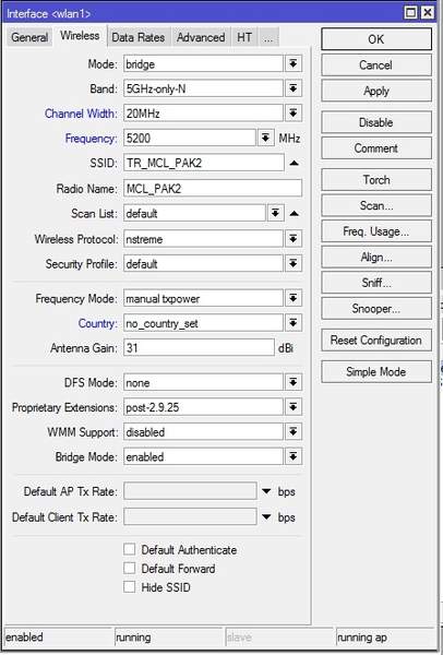 Se estiver disable deixa como está. O problema que estava tendo aqui era justamente por estar habilitado o wireless nv2. Tenta habilitar para verificar se o enlace fecha os HT's. Então assim, o nv2 será habilitado e funcionará.