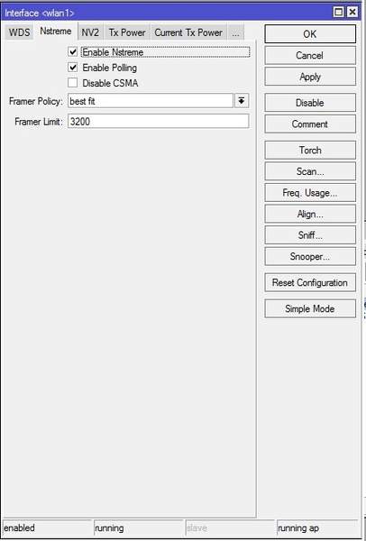 Vou atualizar o routerOS para ultima versão, gostaria então de umas dicas para as configurações dos cartões, acham que a melhor configuração seria: ap-bridge com nstreme do Lado A e do Lado B  station com nstreme habilitado ?.