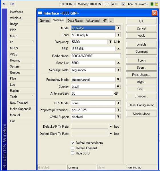 Caso não tenha, tente usar apenas o WDS ou o Nstreme. Deixe a opção Frequency mode em manual txpower.