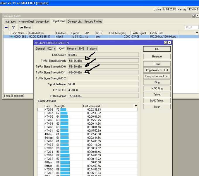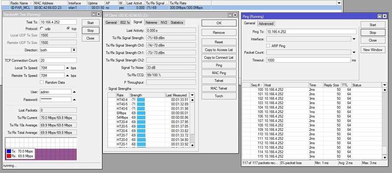 Boa tarde pessoal. tenho um enlace com mk e cartões R52hN de um lado Rb 600 e do outro Rb 433ah, o link foi configurado com WDS ativo e nstreme ta com sinal -59/60 e com trouphout de ate 55Mbit com um trafego passando neste momento de 27 Mbit. O problema e que sem mais nem menos o link cai as interfaces wireless se desconectam e voltam a se conectar posteriormente.