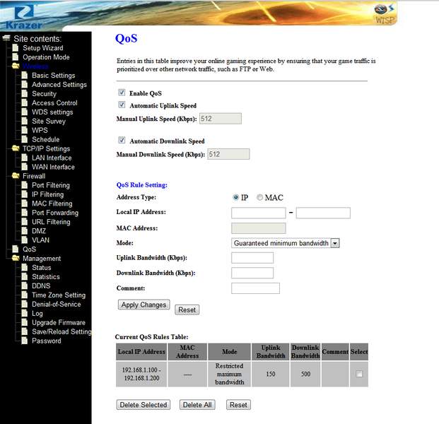 você já testou esse firmware 2.6? ela tem controle de banda por ip ou mac??