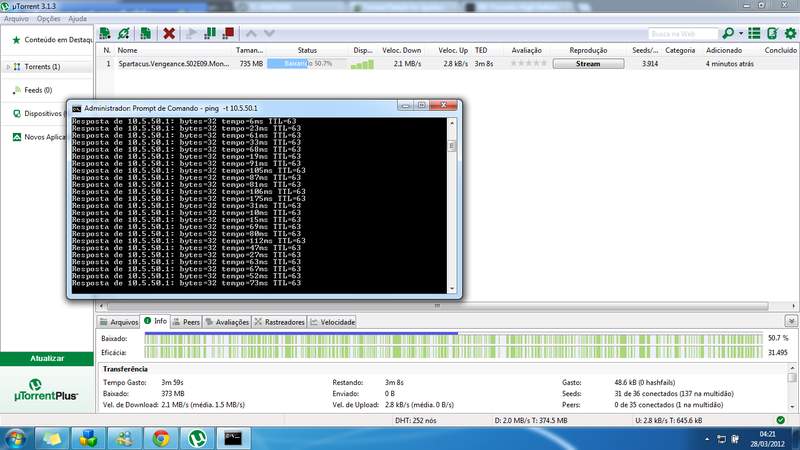 Lembrando que nao estava bem alinhada... E chego a picos de 2.5 nao foi mais pq tinha pouco seed no torrent...