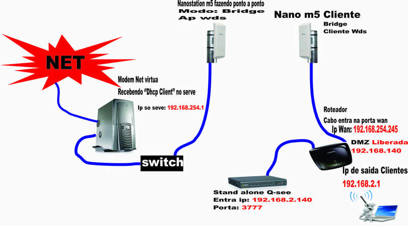 Óla amigos, to precisando dessa ajuda na minha rede tem um cliente com stand alone querendo fazer um acesso remoto das cameras dele minha rede até ele está assim ''Meu serve 192.168.254.1 - Ponto a Ponto em bridge com 2 nanostation - No cliente 1 Roteador entrando ip192.168.254.245  pela porta wan e saindo na faixa 192.168.2.1'' ja liberei as portas no roteado o ddns está ok consigo pinga nele internamente mas quando tento externo não consigo pingo no ddns e aparece '' 192.168.254.245 - esgotado tempo de limite''  qual porta eu preciso libera é no mk ou no roteador ?Anexo 38287