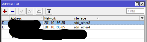 Amigo me desculpe mas funcionar normal 100% como deveria funcionar um loadbalance não, pois você tem 2 links do mesmo gateway é o mesmo que você pegar um modem da velox joga ele em um switch e puxar 2 cabo do switch e colocar cada cabo em cada pc os 2 pcs vão discar a internet e funcionar normalmente mas ai se você fizer o teste de velocidade ou downlaod se o link for de 10Megas cada pc vai conseguir a velocidade de 5Megas ou pode acontecer de uma pegar 7Megas e o outro pegar 3Megas danto um total de 10Megas eu já fiz esse teste e foi assim que testei meu primeiro loadbalance tinha uma conexão de 5Megas ele ficava dando 2Megas em um discador e 3Mbs no outro discador pois eu não tinha outro link até que funcionou dessa forma e no Mikrotik dava as duas Network iguais isso ai é uma porta sendo compartilhada, se funciona, funciona mais se você tiver 10Megas em cada não vai atigir 10Megas em cada discador somando 20Megas já vi 3 casos que os caras só conseguiram resolver trocando a porta ou armário ai sim as velocidades ia ate o máximo normalmente tenho um amigo que ta com 2 links da GVT 35+50 e somente um link puxa o outro fica paradinha e se ele desliga um link o outro dar atividade e fica sendo usado normalmente dai quando foi ver os links deles pegam a mesma Network.
