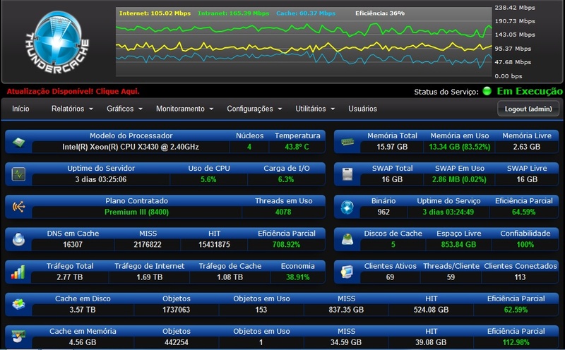 você vende o thunderache né, para um link de 90 Mb com +- 1100 clientes, qual seria o dimensionamento de um servidor e quantas threads seriam?