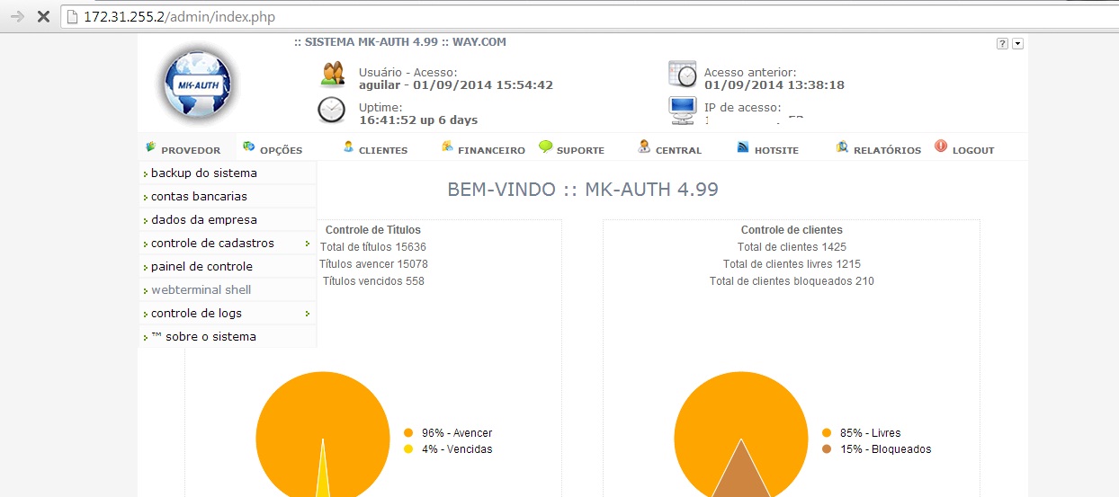 - Gestão de clientes (bloqueio/desbloqueio) automático com integração de boletos bancários, cinco minutos por dia é o suficiente para gerenciar qualquer quantidade de clientes;