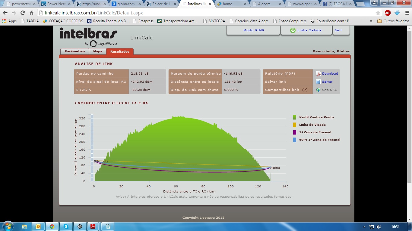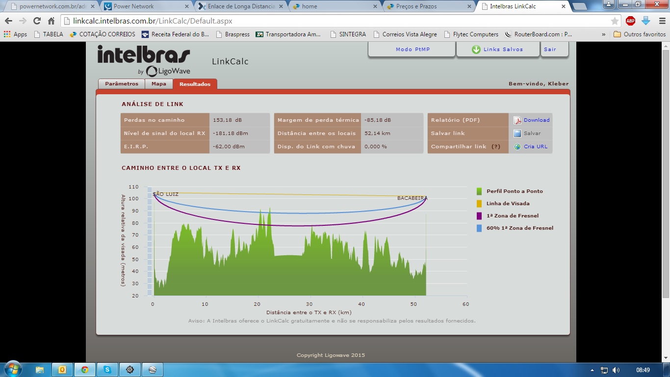 Segunda opção dividir o percurso do link em 3 enlaces, o 1° de São Luís a Bacabeira com 52km, o 2° de Bacabeira a Entroncamento com 41.6km e o 3° de Entroncamento a Vitoria com 50km. Todas as de 60 mts cada. Analizem as img por favor... oq me dizem?