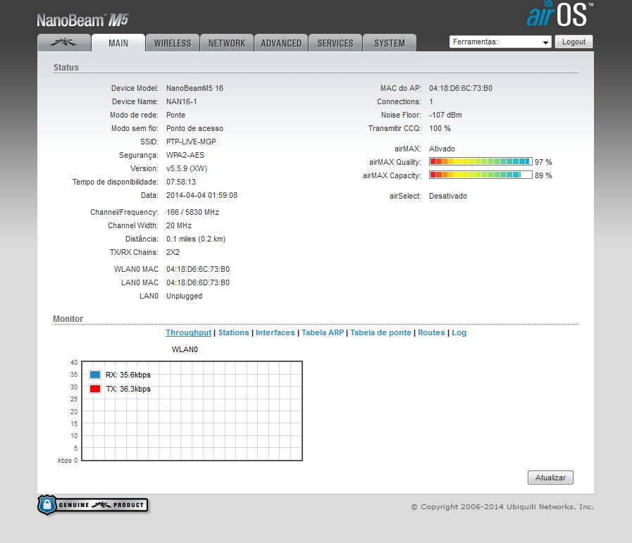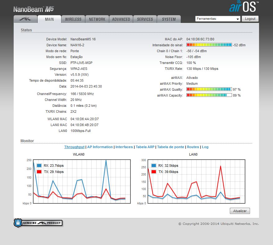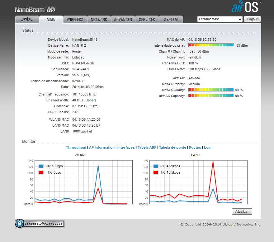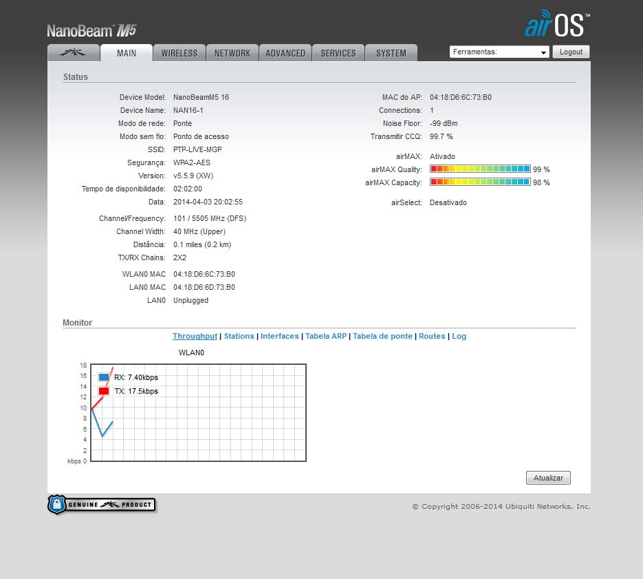 Ficou muito bom esse PTP hein... mais vou de nanobeam mesmo. Pelo menos por enquanto, se eu quebrar a cara com eles fazer o q... vendo no ML e compro as SXT.. `e igual jogar na loteria.. pode ganhar ou pode perder... se der certo.. amem economizei dinheiro.. se der errado.. fazer oq vendo mais barato e parto pra outra. Mais obrigado pela Screen e pelas Dicas... não só vão ajudar a mim como a outros que estiverem no mesmo cenário que eu