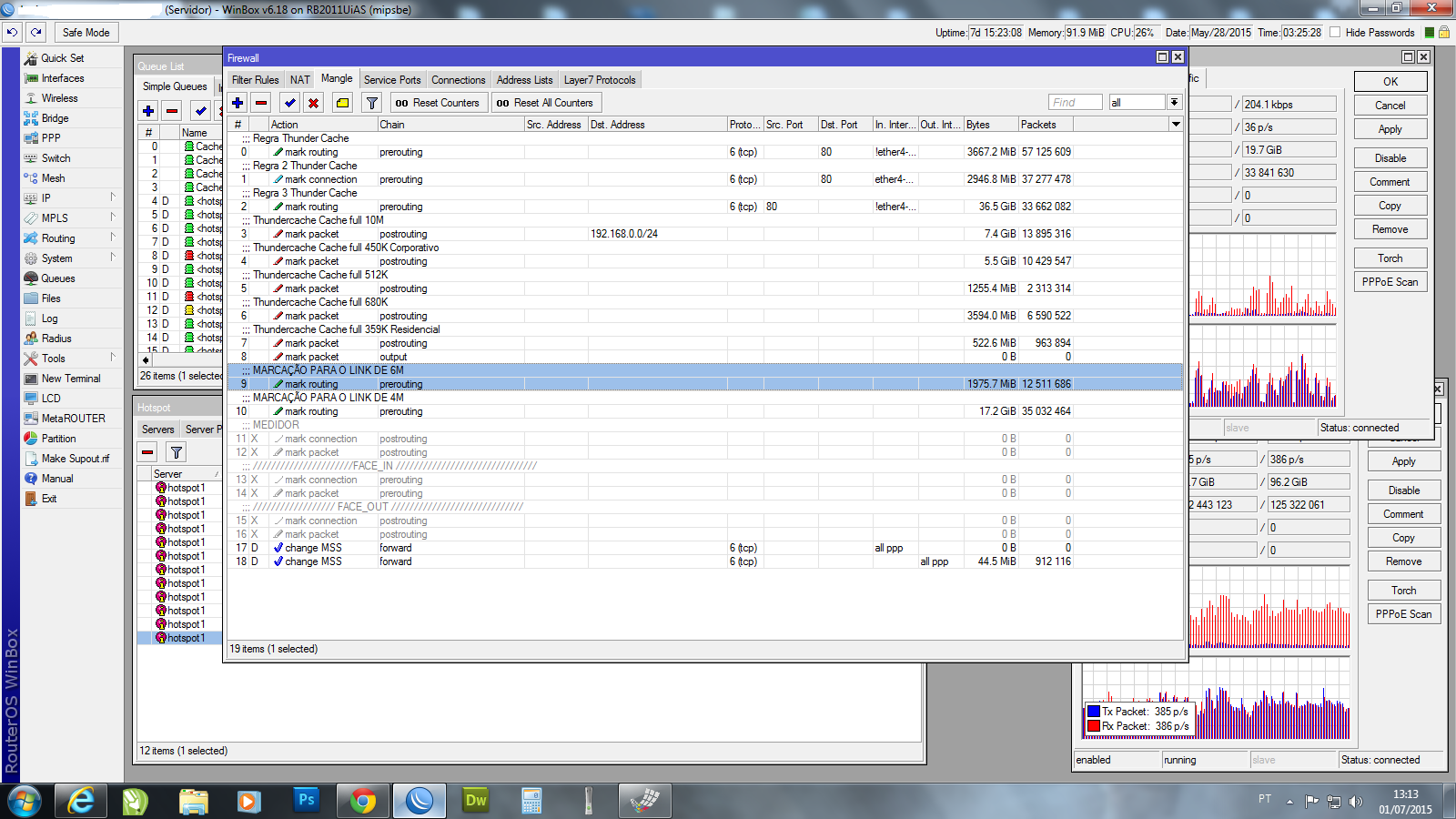 Como que ta as regras do mangle, rotas, nat e configurações das interfaces pppoe?