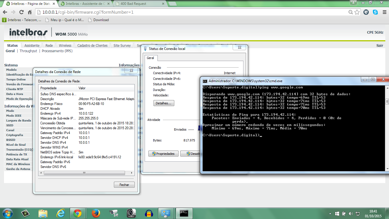 Resetei a antena para o padrão de fabrica com a versão nova e configurei novamente, mesmo assim o problema persistiu.