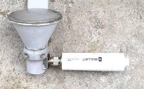 Aqui um LNBF banda C, abaixo de 6GHz, portanto com onda maior e exigindo então um monopolo maior, é quase o dobro do tamanho: