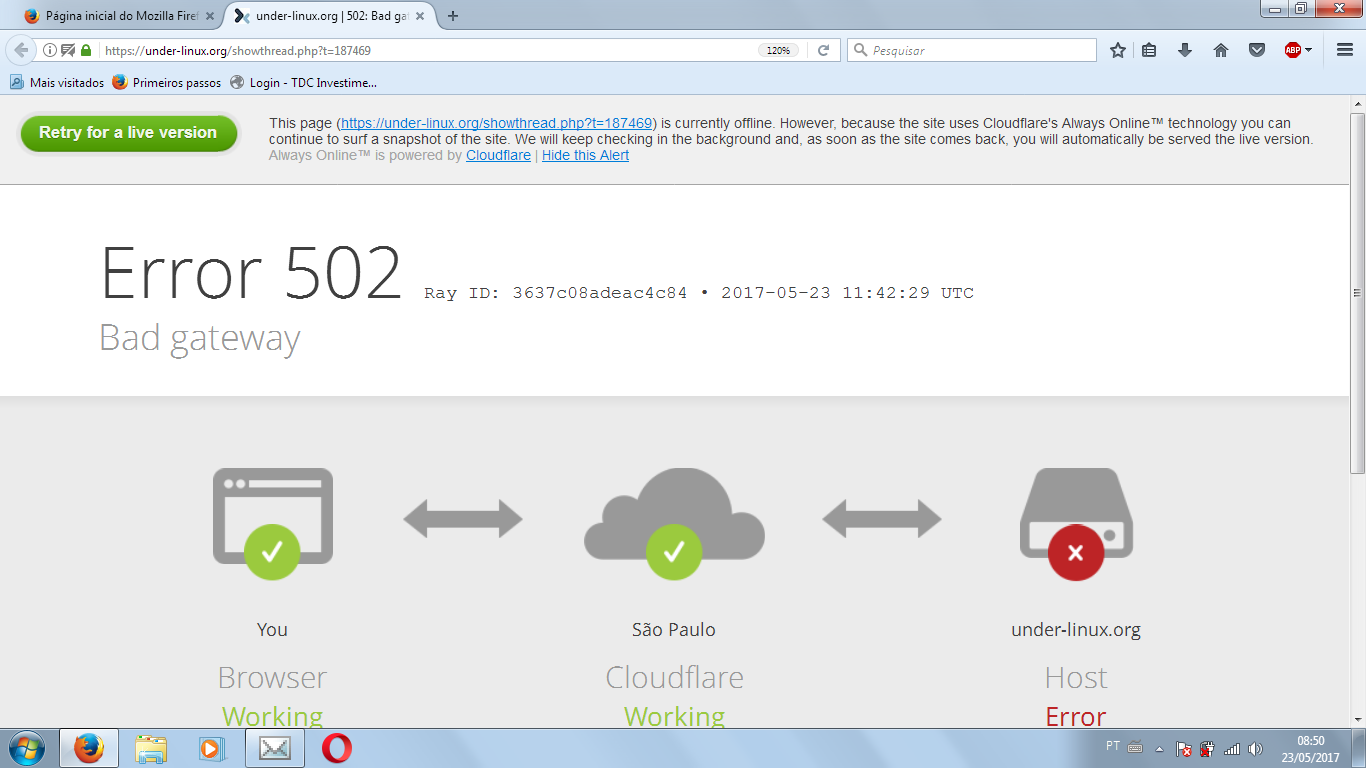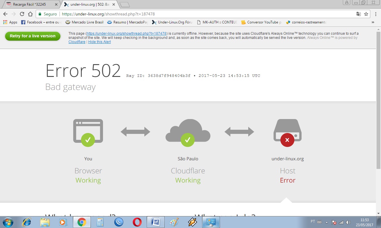 O servidor esta funcionando normal entao esse problema certamente é na rede da cloudflare