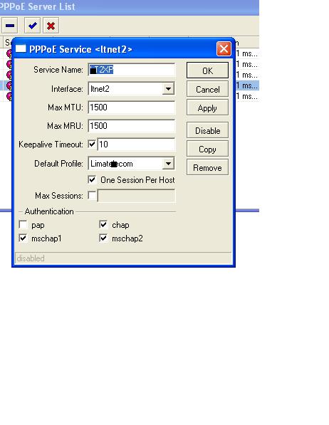 Fiz ajustes no pppoe via parte grafica e ele nao assume o que configuro ja tive problemas com o mk de nao funcionar na parte grafica e de funcionar quando feito via prompt de comando dai queria ajuda para coseguir montar o servers pppoe via prompt.