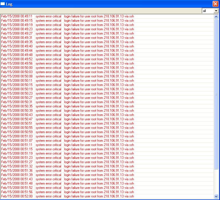 Pessoal, tenho um MK 2.9.27 Rodando 100% á 3 Dias, hoje fui verificar meu log e me deparei com esse log. Será que é Log de Invasão pelo IP:218.106.91.13 (China) Via SSH ?? Seria isso mesmo ??