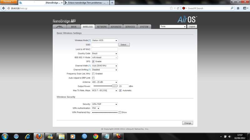 boa tarde pessoal do under,tenho um enlace de 7km com 1 par de nanobridge 25dbi..a algumas semanas atras vem apresentando problemas.simplesmente perde a conexão uma com a outra..como eu estou na ponta da nano configurada com ap.. eu fasso um reboot nela e após 2 min conecta normal...só que essas quedas estão acontencedo constantemente..ja troquei as fontes de ambas(24v 1a) e mesmo assim persiste o problema,alguem tem uma solução?