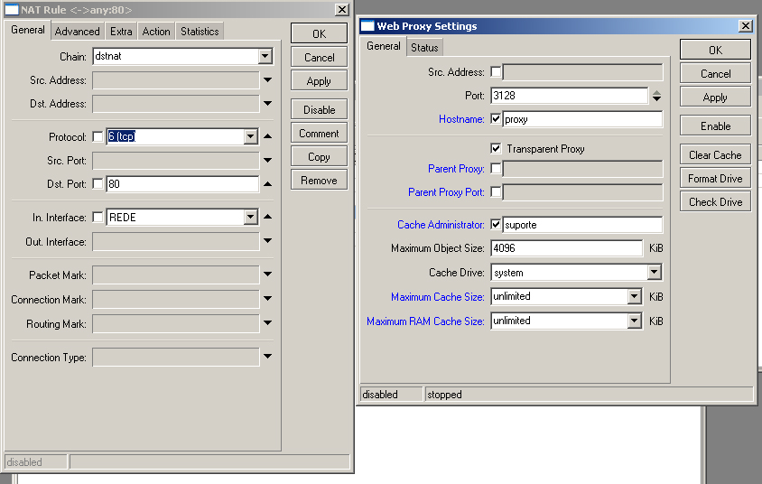 Pessoal, deve existir outros topicos dizendo este mesmo assunto, mais já revirei aqui e não achei nada resolvido, o que está acontecendo é o seguinte, quando eu ativo o webproxy a net funciona normal, mais os clientes não consegue entrar no msn e nem no orkut, eu uso ADSL e o MK faz a discagem.