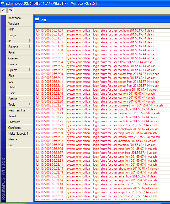 Pessoal... isso aqui he tentativa de invasao ( tela em anexo) nao he ??? como resolver isso ??? ja resetei a RB, mas todo dia tem, e o pior he que meu ip he dinamico, mas nao adianta.... HELP !!!!!