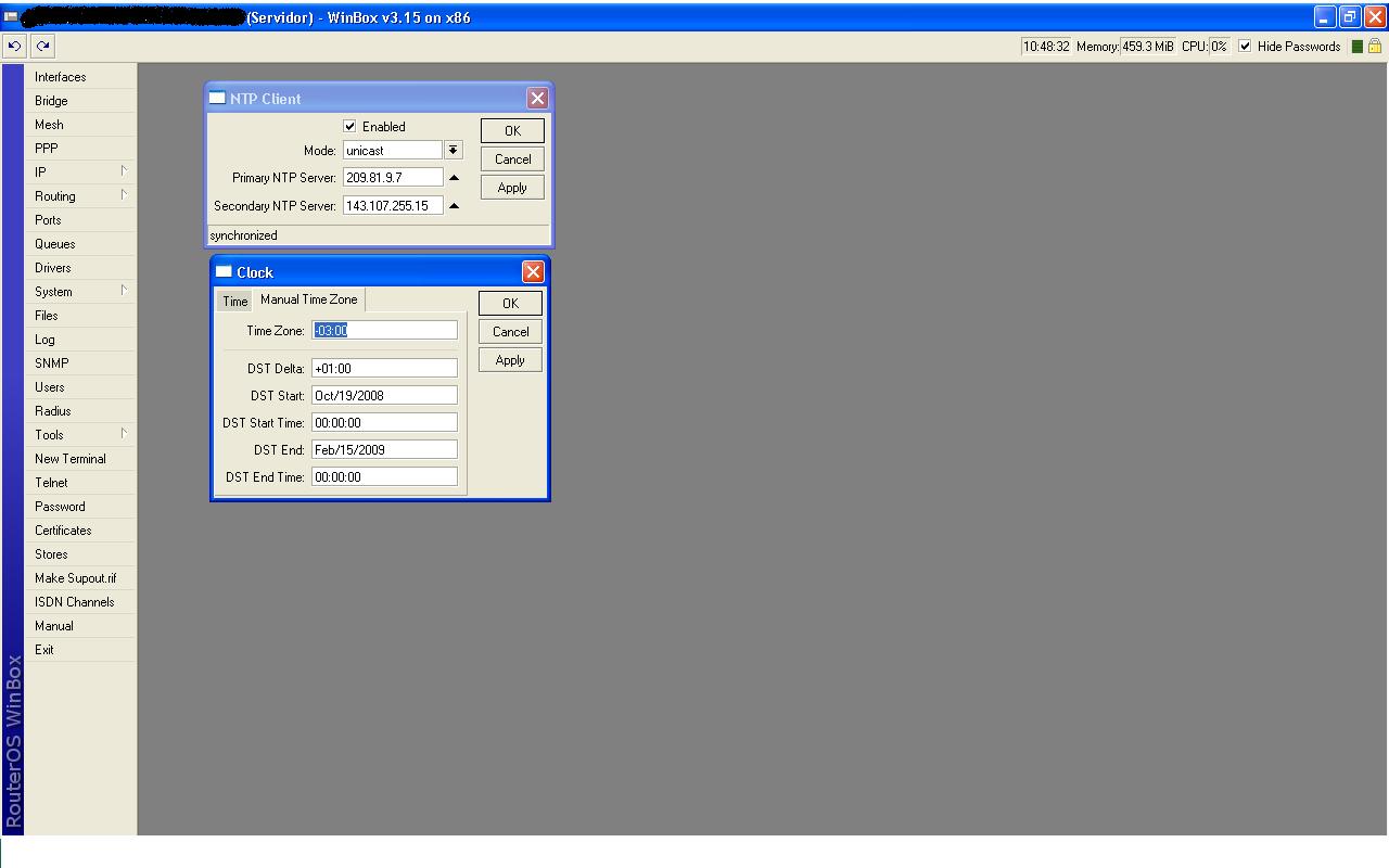 Caro Alexandre, de uma olhada como ficou minha configuração! Ela foi feita assim q eu soube a data oficial da modificação do horário de verão. Ele alterou sozinho a data e sincroniza perfeitamente, e assim esta nas routerboards e tmb no PC-AP.