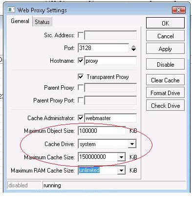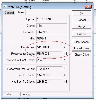 Quando configurei meu WebProxy, li em um post, um colega recomendando que configurasse, como tamanho inicial do cache, uns 15GB.. e fosse aumentando conforme o cache fosse sendo usado.. pois bem, assim fui fazendo, sem problemas... quando o cache ia crescendo mudava o MAximum Cache Size do WebProxy, dava um Apply e pronto. Só que não consigo passar dos 55GB.. parou nisso.. mesmo mudando o valor do Maximum Cache Size e dando Apply, na aba Status, em Reserved for Cache, fica só 56876032...