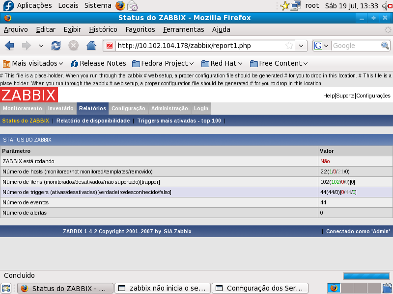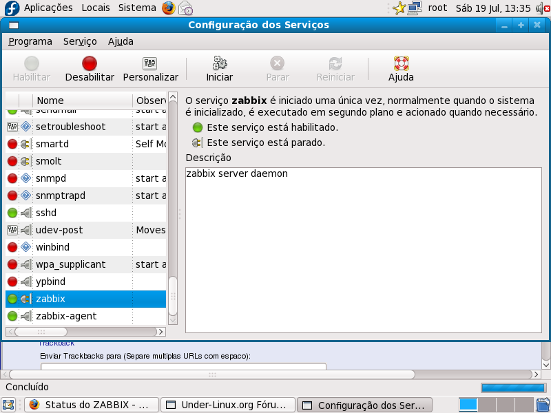amigos gostaria ajuda de vcs para o seguinte problema, instalei o zabbix o status esta parametro zabbix esta rodando