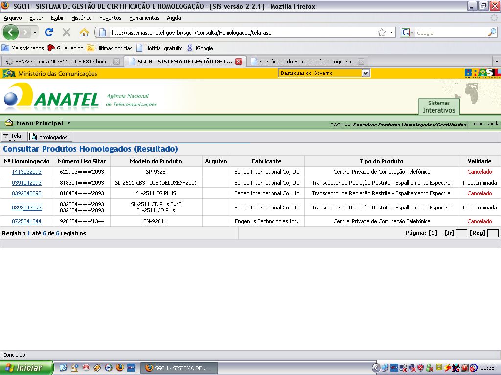 Amigos, não sei se vcs já tem conhencimento.... A Homologação do SENAO PCMCIA caiu...