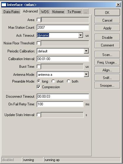 posso te garantir q almentando a potencia vai só piora, eu mesmo já fiz o teste, uso placas ubiquiti xr2, cada placa no piko fika de 40 a 50 clientes online eu uso elas em 18 dbm ou seja 63 mw, já testei 26 dbm 400 mw (poderia usar até 600 mw), o ack timeout fiko em 350 us, usando em 63 mw fika em 30 no maximo 50 us, e o sinal dos meus clientes fika igual, qual o sinal que aparece p vc em noise floor? pq aquele numero é até o numero q vc vai conseguir fazer com q seus clientes naveguem, o meu fika em -92 se eu consegui sinal poko melhor q isso já navega.