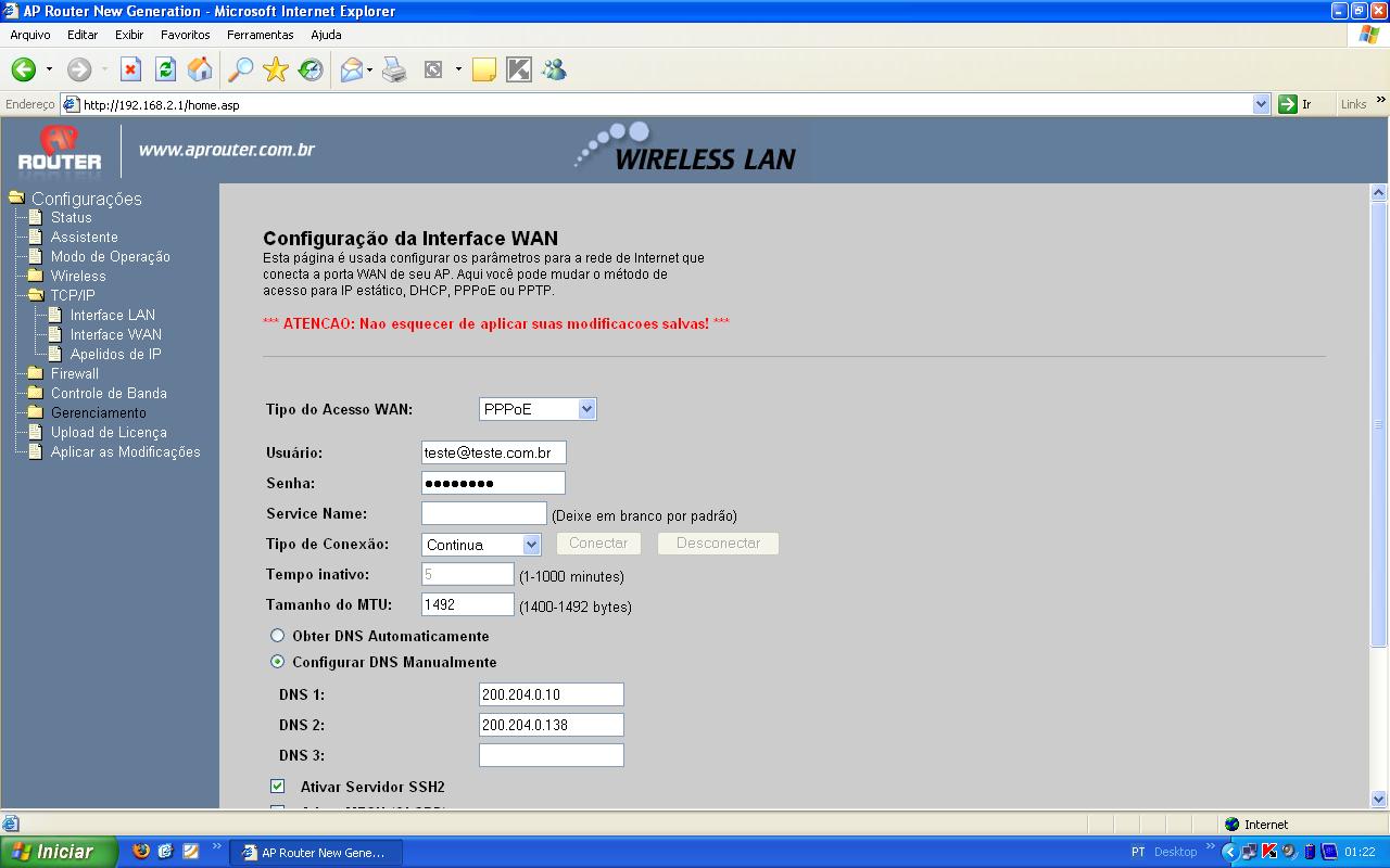 pois é... exatamente isso... ele disca e rotea para as outras portas.... eu sugiro que vc deixa a MTU em 1912 pois só assim que consegui conectar, o modo de operação tem q ser Cliente ISP (se nao me engano)... mas o meu maior problema esta sendo a latencia se tiver alguma config especifica que vc faz em wireless avançado eu agradeço
