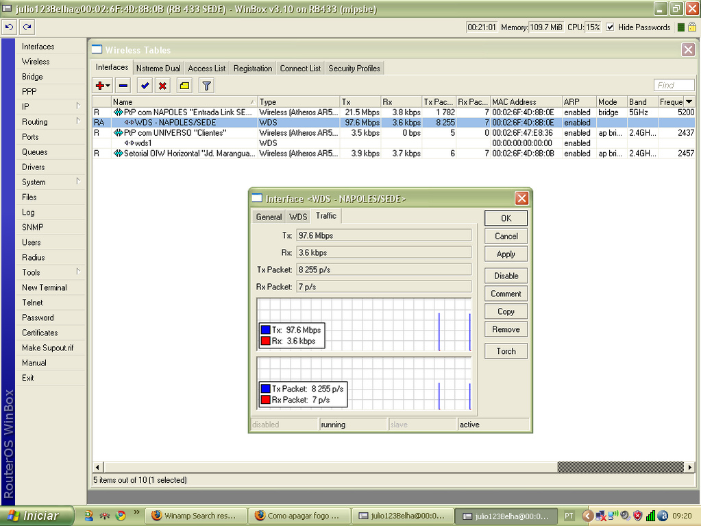 Só não sei explicar como a interface wan (wireless) tava aparecendo um TX de 98Mb, se o limite do cartão é 54.