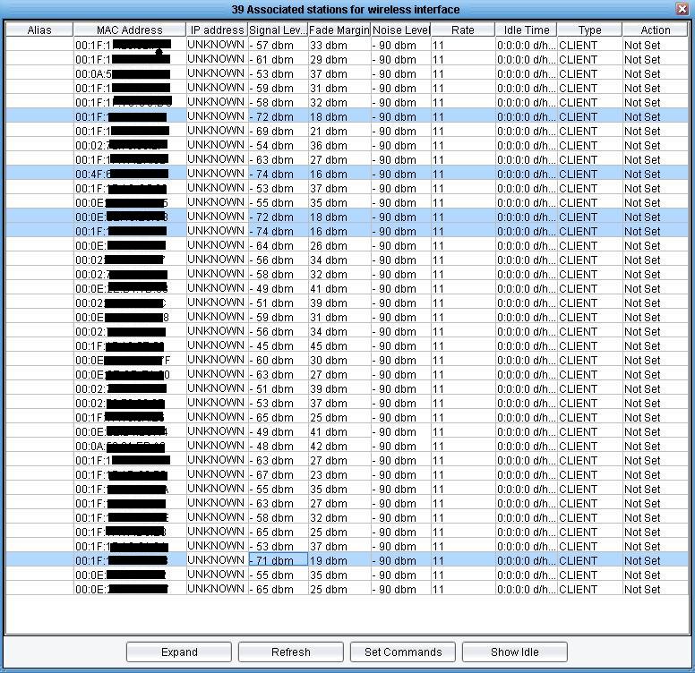 Eu marquei os clientes que estão com sinal a cima de -70dbm será que pode ser isso o problema da rede? Porque de manhã tem menos usuários conectados e esses que estão com sinal ruim não estão usando, quando muito tem dois de manhã.