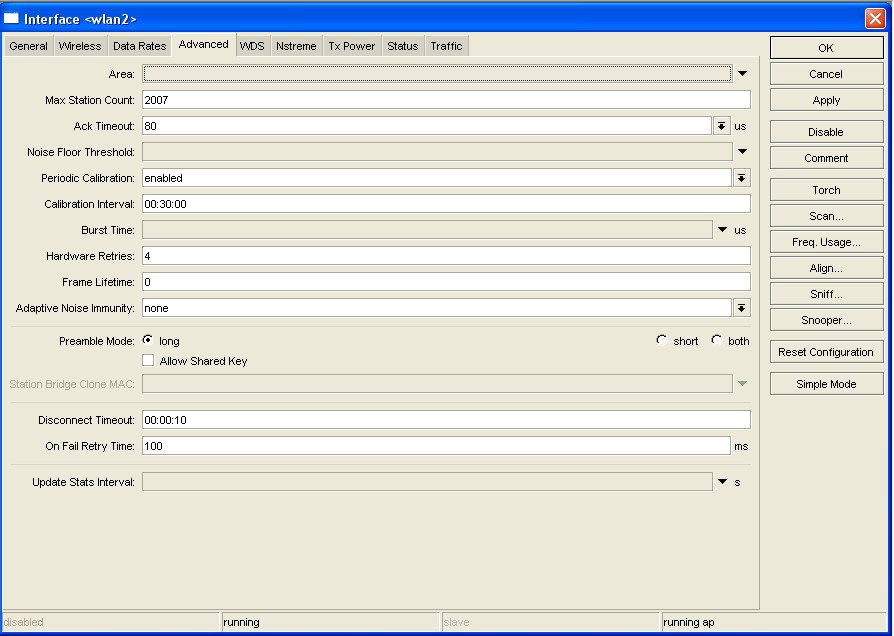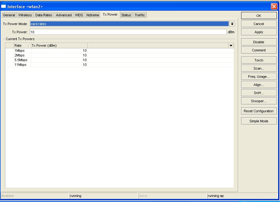 OBS ai está setado a potência em 10 pq os cartões EnGenius Plus tem um erro e sempre vc tem q tirar 10, ou seja, 10 q está ai + 10 q é o erro do cartão então ele está a 20. Olha q tenho clitentes a mais de 11km da torre.