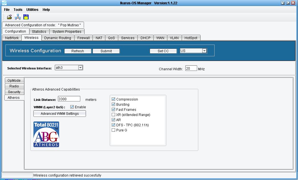 Você marcou a opção WMM (Layer2 QoS) na guia Atheros em Wireless?