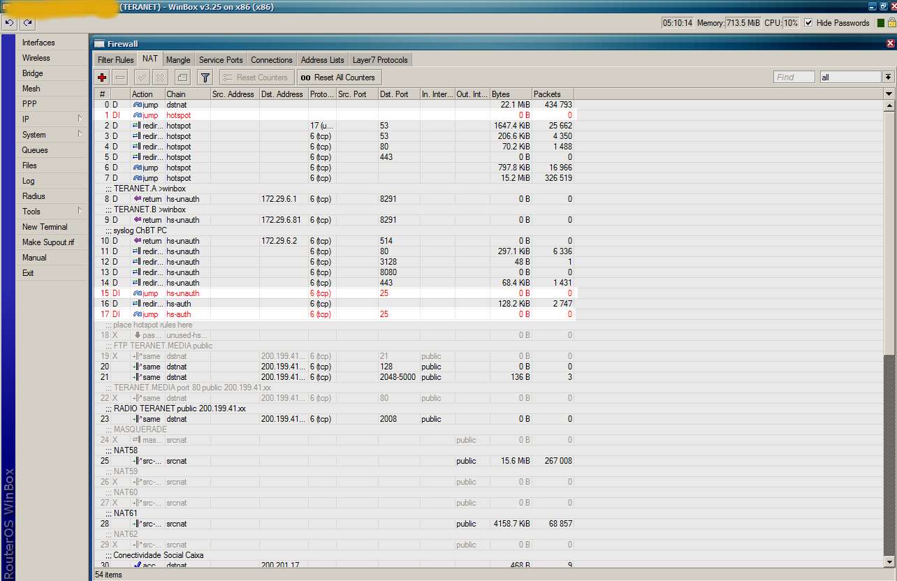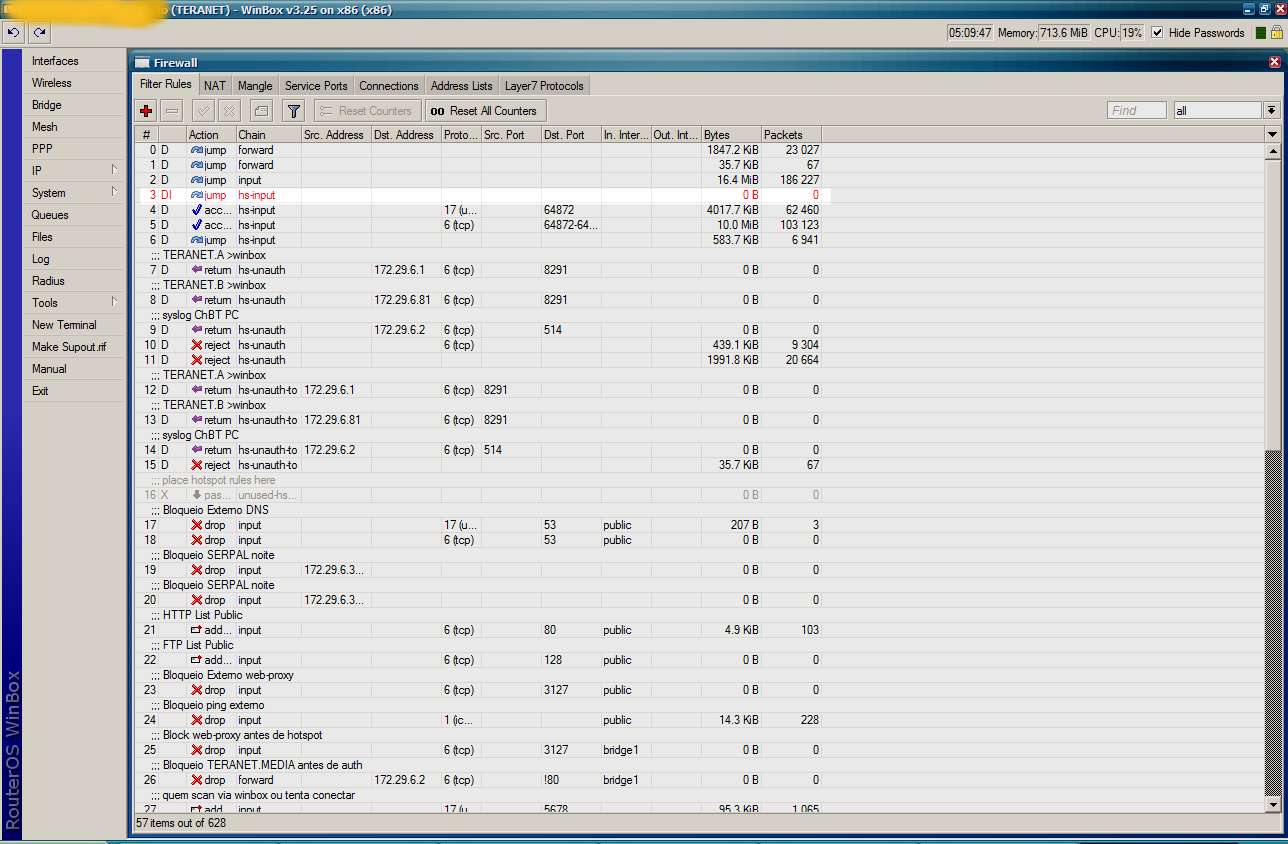 Agora, depois que instalei a versão 3.25 licenciada, é só começão a usar o winbox o uso já sobe pra mais de 50%, e começa a ficar tudo lento.