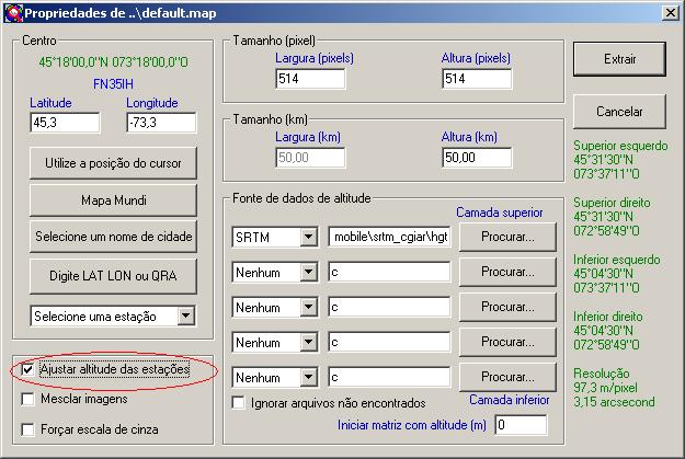 5) Quase lá: Vá em "Arquivo" -> "Propriedades do Mapa". Escolha novamente "SRTM" onde tem "Fonte de dados de altitude" e aponte novamente para o diretório dos .hgt