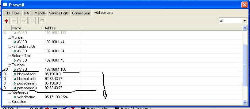 Tenho o MK com a versão 2.9.51 licença nivel 4 e um link dedicado da Telefônica de 2 megas full e as vezes acontece algo muito estranho como neste instante tenho um consumo na interface de entrada do MK "do LINK" consumo de 2 megas, tanto na TX rate como na RX rate com pouquissimos, tipo 10 clientes usando. Ai para testar, eu desconecto o cabo que vai para os clientes ficando somente eu no MK e eu sem fazer nenhum tipo de consumo continua mostrando um consumo na ether " interface do link " como se meu link estivesse á toda !!! Os leds da placa de rede 3com mostram trafego alto e o roteador da cisco também mostra trafego atraves do led da saida Ether.