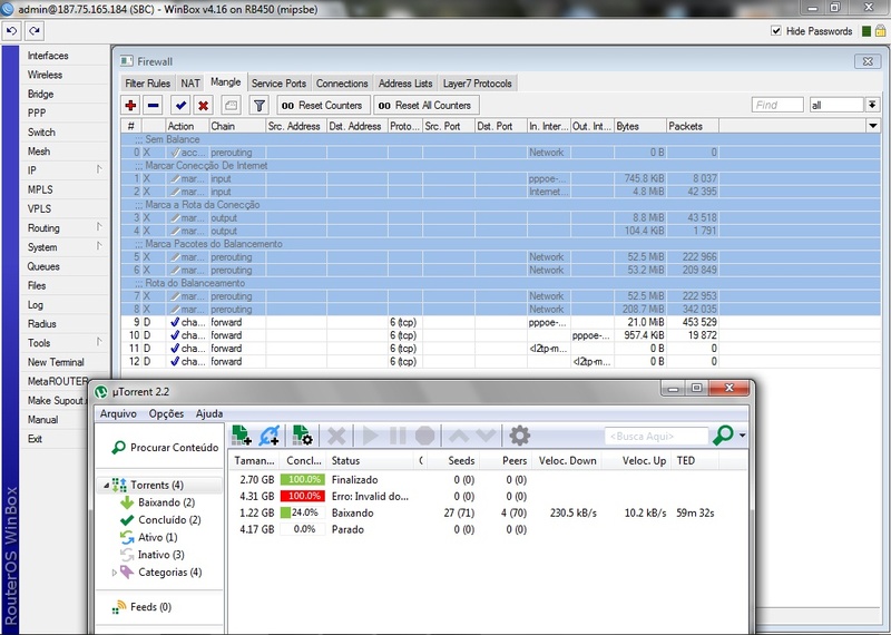 Pessoal to com uma duvida, fiz o balanceamento PCC entre dois Links de 2mb, o Primeiro PPPoE da Telefonica e Outro da Net Virtua IP Dinamico.