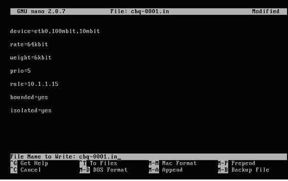 Cada regra deve ter um nome exclusivo. Você nomeou duas regras com o mesmo nome: CBQ-0001.IN e CBQ-0001.OUT são considerados pelo CBQ como um arquivo só. Com certeza ele vai considerar a última somente.