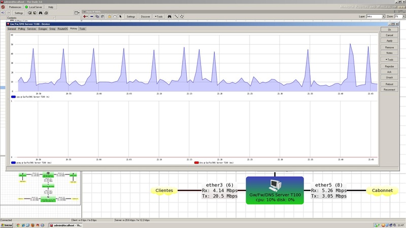 Eu monitoro meu servidor Mikrotik com o The Dude e percebi que a cada 5 minutos existe um pico de processamento no gráfico da CPU. Gostaria de saber se os colegas têm alguma idéia do que está acontecendo. Agradeço qualquer contribuição.