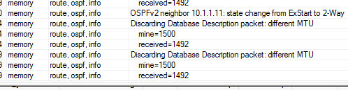 Não verdade para o OSPF subir todas as interfaces que participam do OSPF precisam ter o mesmo MTU no próprio log está bem explicito. geralmente é bom deixar o patrão.