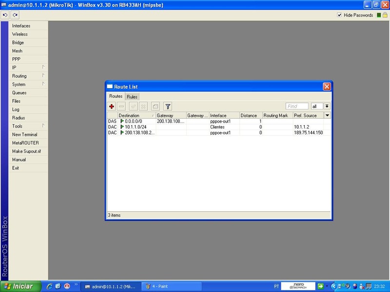 Posta a imagem ai, e tb de IP/Routes