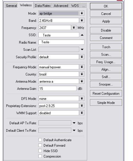 Estou començado agora a trabalho com Mikrotik e redes Wireless, gostaria se possivel alguém pudesse me ajudar. Se as informações dadas não forem suficientes é só me informar que eu as complemento.