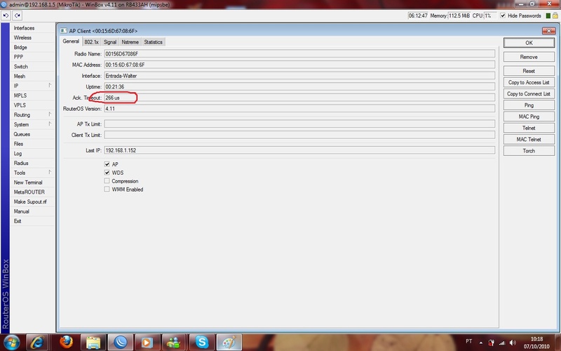 O meu ack pela distancia eu imagino que esteja bom não sei gostaria de alguma orientações de vocês pois já fiz vários testes peguei uma tabela de ack que tem no fórum sete meu ack para 350 e outras medidas para até 40km e não deu em nada o sinal pioro e o link caiu de vez. Por isso que deixei em modo defult.