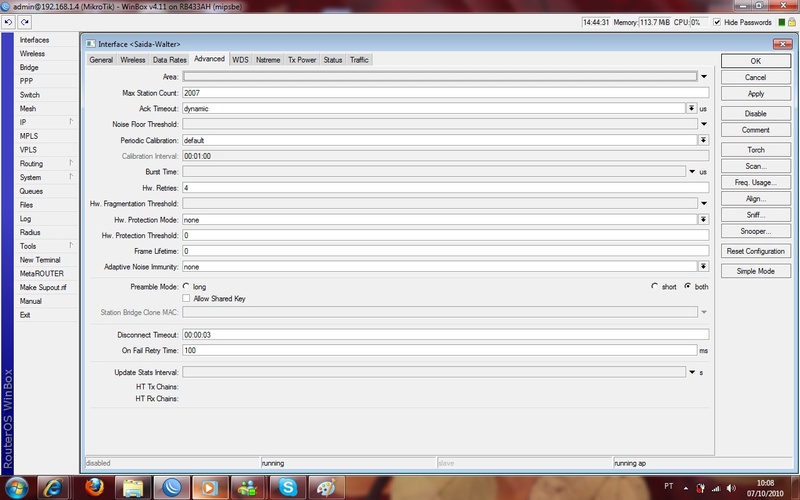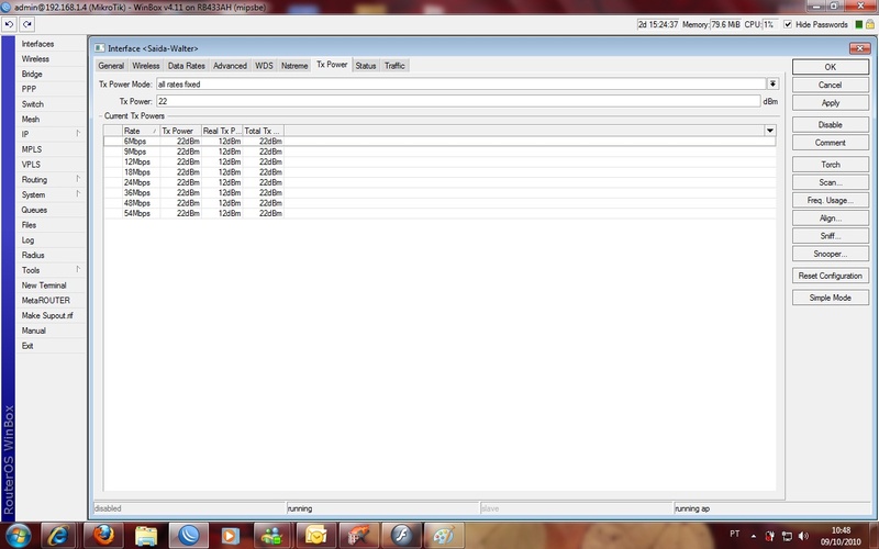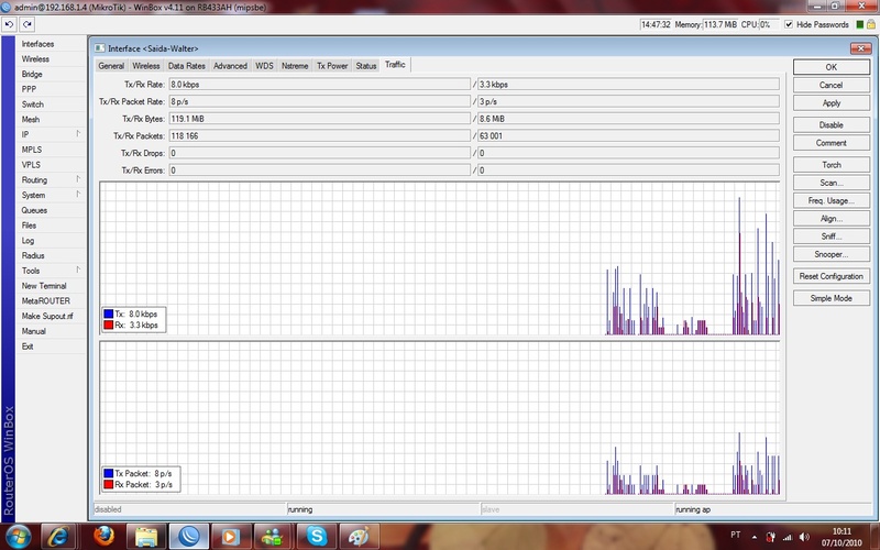 Bom isso fica estável até alguma transferência de algum arquivo seja download, upload na internet ou intra net ai cai o tx/rx sai de 54/54 para 6/6 não sei porque acontece isso!